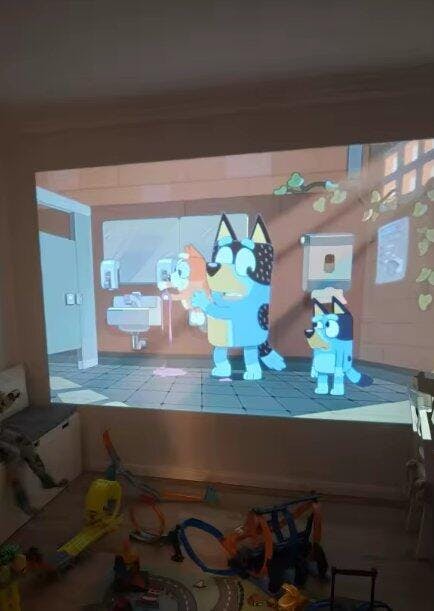 The projector delivers Full HD 1080p native resolution for crystal-clear images. With 6000 lumens brightness, it provides clear projection even in moderately lit rooms.
